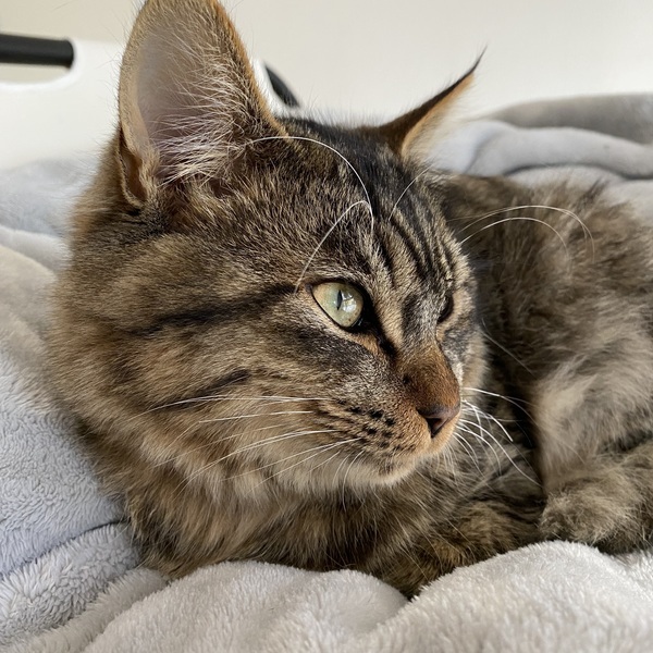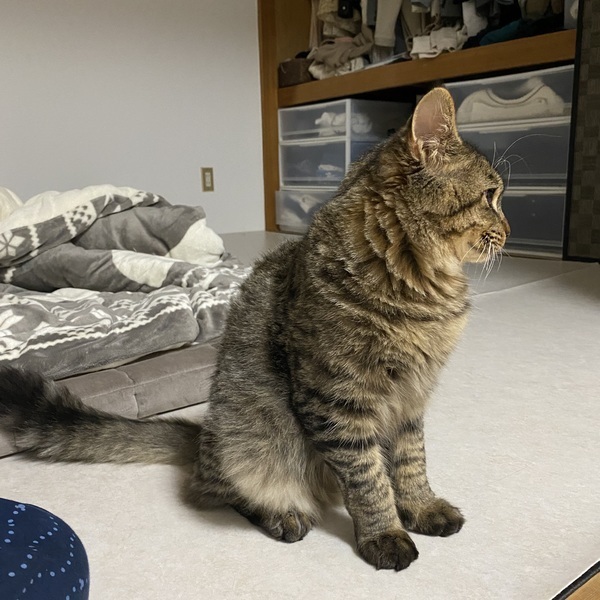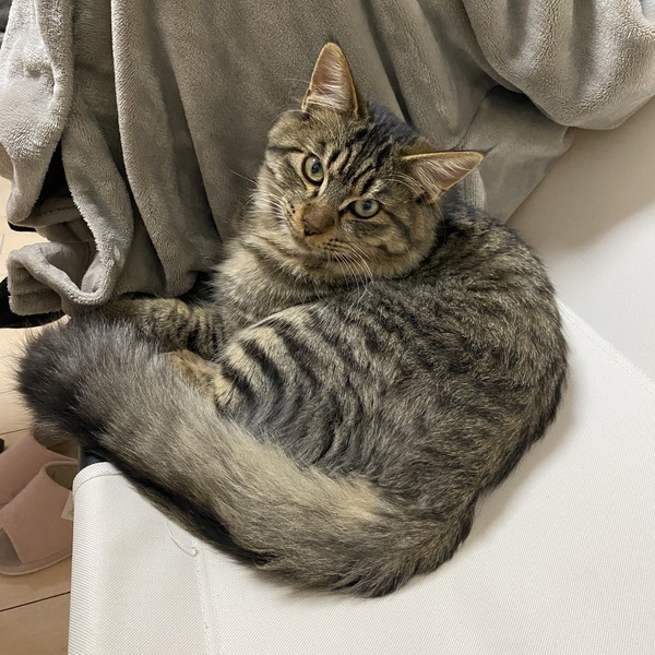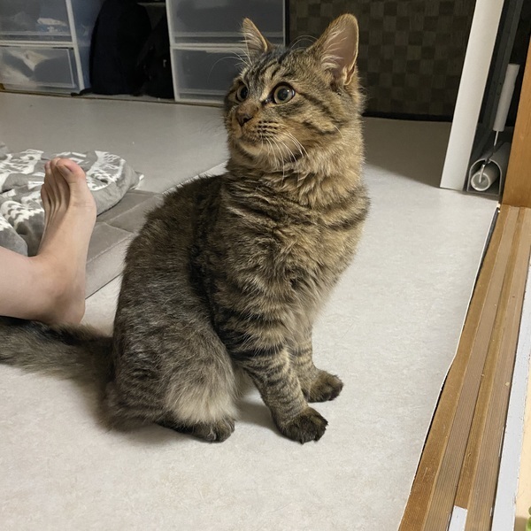 | 特徴(性格など) | 茶色のキジトラ柄、長毛です。 優しくて懐っこくてとても甘えん坊な子です よくゴロゴロ甘えてきます。最初はビクビクして逃げる可能性ありますが威嚇は保護した際のみ以外はしてません。噛んだり引っ掻いたりも殆どしなく、寝る時は一緒にベッドにきて寝ています。 |