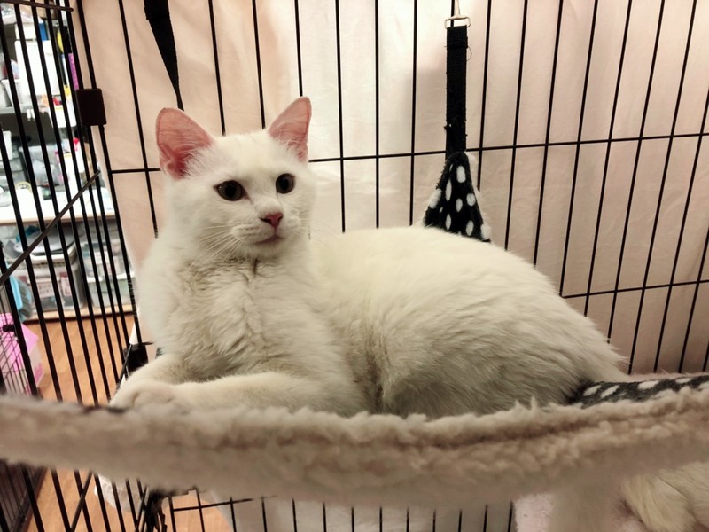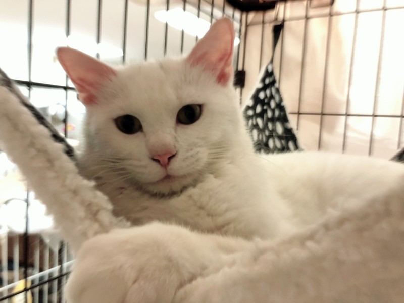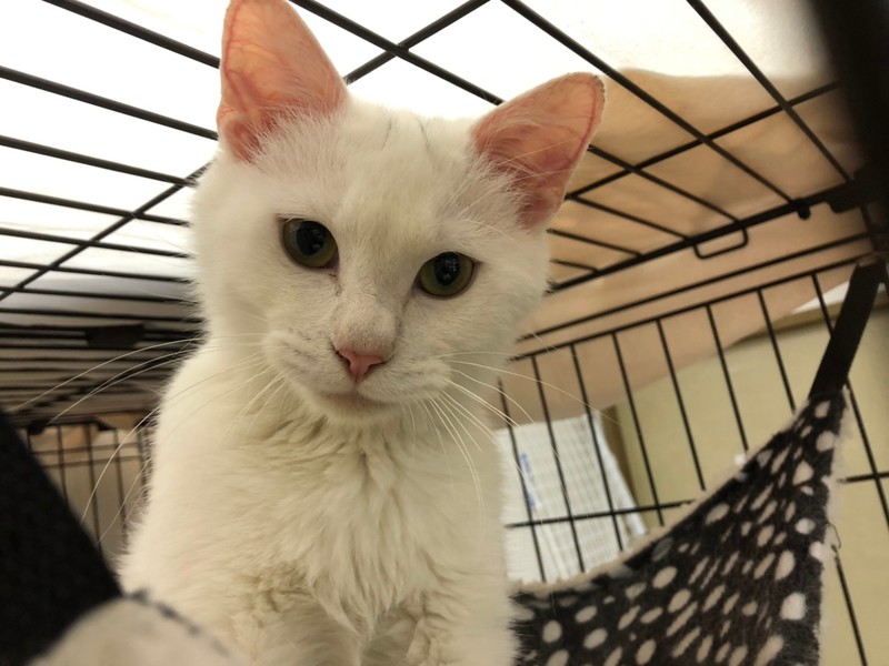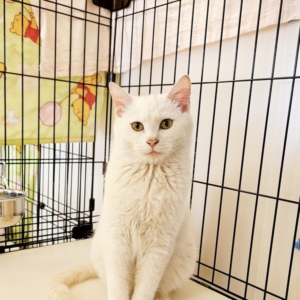 | 特徴(性格など) | 2020.5.20生まれ(推定) 毛色:白 真っ白少し長めの毛をもつ男の子。 頭のてっぺんにはキトンキャップのグレーの模様が残っています。 兄妹のパンナとくっついてお昼寝したりご飯を食べたり、 おもちゃで遊ぶの大好き♪ 元気いっぱいに保護部屋の他の猫さん達と 獲物を狙ってハンティングの修行中です!! 胸毛もとってもゴージャス☆ 将来が楽しみな男の子です。 |