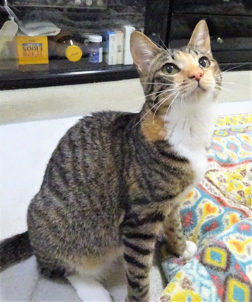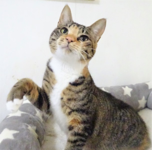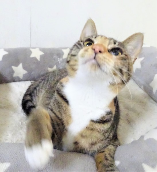 | 特徴(性格など) | 仮名: ななみちゃん(メス) 毛色: 三毛キジ、尻尾長い 性格: ケージから出ると真っ先に挨拶しに来ます。 遊んでいても途中で寄ってきて、スリスリする甘えん坊です。威嚇なく抱っこ出来、他の猫とも仲良く遊べます。 あまり鳴く事もなく、他猫とプロレスする姿は大人しく見えませんが、普段は大人しいほうです。 ご飯の要求も大騒ぎすることはありません。小さい頃の風邪の後遺症で、鼻づまり、またはアレルギー性鼻炎みたいな感じですが、これ以上の治療は必要ないようです。 近づくと鼻がズーズー鳴っていますが、本猫は元気です。こういう鼻後遺症の子は沢山いますが、ご理解頂けるお家を探して居ます。 ノミ取り済 検便済 駆虫済 3種混合ワクチン済 避妊手術済 猫エイズ・白血病ウィルス検査はともに陰性です |