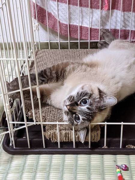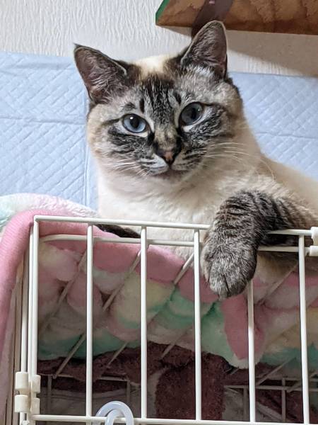 | 特徴(性格など) | 名前:パール シャムMixの女の子 2カ月間の家猫修業で人との暮らしには慣れてきたところです。 猫同士で遊ぶのが好きな子なので先住猫(できれば)がいるご家庭希望です。 猫同士でコミュニケーションをとるのは全く問題はありませんが(ただし、相性はありますので絶対とは言い切れません)まだ人には撫でる、抱っこさせるなどはできません。 性格的には1匹でよく遊ぶので 長い目で見てもらえる寛大な方でお願いします。 |