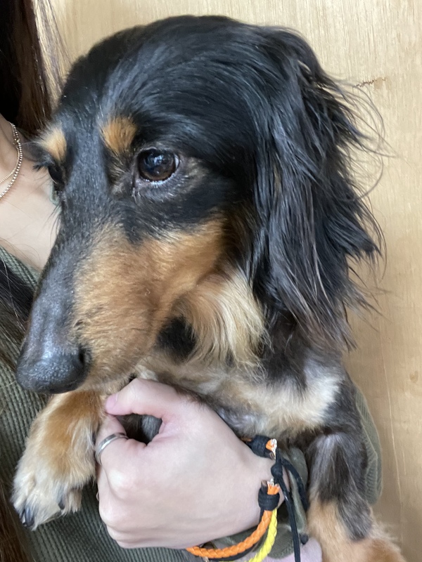 | 特徴(性格など) | 黒色の女の子です。 とても元気でよく走ります。 膝の上で伸びたり顔を舐めたりお腹を出して撫でてアピールしてくる人懐っこい子です。 前の飼い主さんの都合で声帯を切っています。 |
