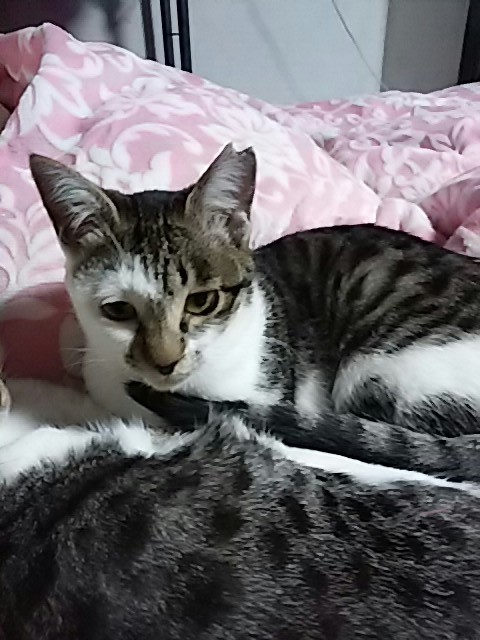 | 特徴(性格など) | セリーヌちゃんとキプリング君は、兄妹でキジ白柄。とっても人慣れしていて、私の顔に身体をくっつけて寝ます。 | ||