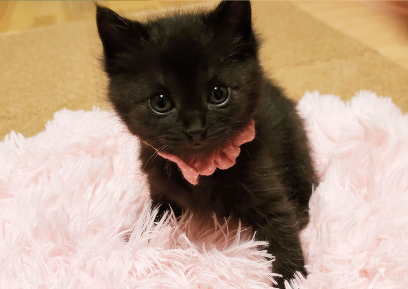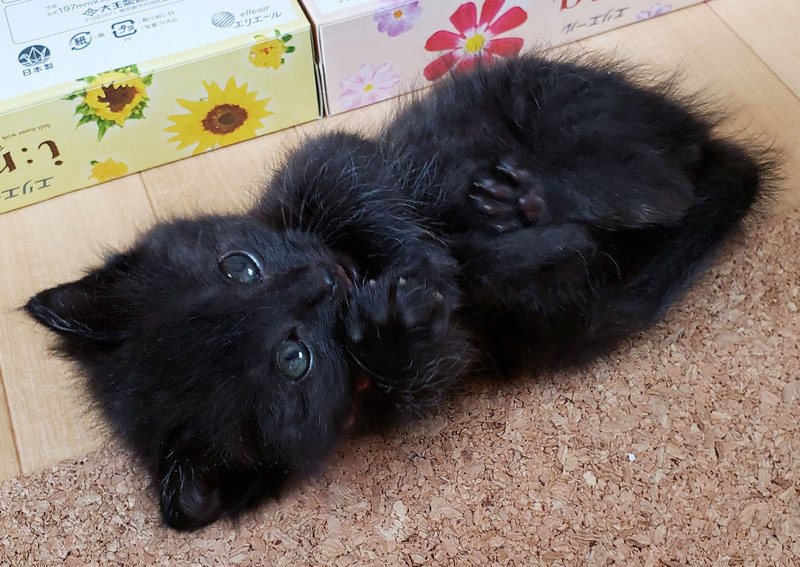 | 特徴(性格など) | 【性格など】 生後1ヶ月ぐらいの、黒猫の女の子です。 雨の中、瀕死の状態で公園に捨てられていたところを保護いたしました。 フワフワの毛並みにクリクリお目目♡まるで子グマさんのようです♪ 尻尾は見た目真っ直ぐですが、先だけほんのり鍵しっぽです。 とにかく人が大好き! 部屋の隅から隅まで猛ダッシュしたり、ボールのおもちゃで思いっきり遊んだ後は、お膝にヨチヨチ登ってきてぐっすり眠ります^^ 常に人の側にいるのが大好きな甘えん坊さんです。 優しい性格をしているので、噛んだり、爪を立てることもありません。 初めて猫ちゃんを迎えられるご家庭でも安心して迎えていただけると思います^^ とっても仲良しなので、ロコモコ兄妹で迎えていただける方大歓迎です。 【健康状態】 よく食べ、よく遊び、元気いっぱいです♪ トイレトレーニング中です。 4/9(金) ・ウィルス検査結果 エイズ 陽性 (生後6ヶ月以降に陰性に変わる可能性が高いとの診断です) 白血病 陰性 ※恐れ入りますが、譲渡費用欄に記載の金額をご負担いただいております。 ご理解いただけますと幸いです。 お引き渡しの際に、診療明細および領収証をお渡しいたします。 領収証に記載の金額以外は一切請求いたしませんので、ご安心くださいませ。 【猫エイズ検査について】 猫エイズの検査は「抗体検査」といって、ウィルスそのものではなく、感染したウィルスから体を守るために作られる「抗体」があるかどうかを調べる検査です。 例えば母猫がエイズキャリアであった場合、生後6ヶ月までの子猫は母乳を介して母猫が持っている抗体を与えられることになるため、一時的に子猫の体内に残る可能性があります。 そのため、子猫自身がエイズウィルスに感染したことが無くても「子猫の体内に抗体がある=猫エイズ陽性」という結果が出てしまうことがあります。 このような場合、母猫から移行された抗体が子猫の体内から完全に無くなる生後6ヶ月以降に再検査をすると、陰性となります。 そもそも猫エイズの感染経路は、流血を伴うような猫同士の激しい喧嘩などによる傷口を介して感染します。 猫エイズウィルスは人間や犬には感染しません。 獣医師の先生の診断では、モコちゃんの月齢や、保護時にケガや傷口等がなかったことから、おそらく母猫からの移行抗体の可能性が高いとのことでした。 但し、生後6ヶ月以降に100%陰性になるという保証はございませんので、そちらも含めてご検討いただけますと幸いです。 (先住猫ちゃんがいらっしゃる場合、再検査で陰性になるまでは念のため隔離が必要となります) 「エイズ」という響きと、詳細が分からないことで「恐ろしい病気」というイメージがありますが、まずは知ってご理解いただけましたらとても嬉しいです。 猫エイズに関する情報はこちらをご参照ください↓ https://www.axa-direct.co.jp/pet/pet-ms/detail/7984/ |