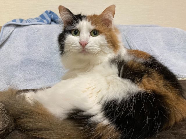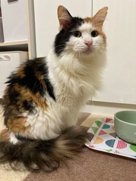 | 特徴(性格など) | ☆☆☆ご希望の方は、以下のアンケートフォームにご記入の上、送信してください☆☆☆ ねこ親希望アンケート→ http://chibawan.net/contactform_cat 【猫No】 3281 【愛称】 ももか 【性別】 メス 【年齢】 推定3歳(2022/1現在)(2018/4頃生) 【毛色】 三毛(長毛) 【体重】 4.46kg (2022/1現在) 【状態】 ワクチン接種済(2021/4/7)、血液検査(エイズ(+)・白血病(-))、ノミダニ駆除済、トイレ習得済、不妊手術済 【保護場所】千葉市 【日記】 http://sakuranouchi.blog.fc2.com/ さくらのおうち https://www.instagram.com/sakuranouchi/ Instagram 【経緯】 千葉県動物愛護センターより引き出し 【性格】 長毛がゴージャスな美猫です。おっとり穏和な性格で、ちょっと鈍臭いところが愛らしい女の子です。多頭環境で生まれ育ったため、猫見知りすることなく、相手の性格に合わせて上手に接することができます。人に対してとても慎重な性格ですが、信頼関係を築いた相手であればお腹等を触ったり抱っこしても平気です。グイグイと積極的に甘えるタイプではありませんが、ソファーでくつろいでいると静かにそっと近付いてきて撫でて欲しそうな表情をしたり、撫でる手を止めると「もっと撫でて」と頭を擦り付けてきたり、寝転んでいると添い寝をしてくれたり、最近は甘えん坊な一面もみせてくれるようになりました。今後も年月の経過とともに人との付き合い方は更に進歩していくと思います。おもちゃで遊んだり、美味しいオヤツを食べるのが大好きなので、遊びやオヤツを通じてももかちゃんとの関係を築き、ももかちゃんが成長していく過程を楽しみながら見守って頂ける方とのご縁を希望します。 預り宅での日常の様子はInstagramでご紹介しておりますので、ぜひ一度覗いてみて下さい。 【補足事項】 ももかちゃんは怖がりで人に対して慎重な性格なので、単身又は2人世帯などの大人だけで静かなご家庭が向いており、単身女性からのご応募は大歓迎です。また、預り宅では他猫の存在を頼りにしているため、先住猫がいるご家庭であれば早く環境に慣れることができると思いますが、ももかちゃんのペースを尊重してじっくり時間を掛けて見守って頂ければ1匹飼育も可能かなと感じています。 【その他】猫に合った生活スタイル、終生飼養、完全室内飼育、脱走防止対策、定期的なワクチン接種などの健康管理、定期的な近況報告をお約束いただけるご家族で、アンケートに快くお答え頂ける方からのお問い合わせをお待ちしております。お届けの範囲は、猫の負担を考慮して千葉市から車で90分程度の範囲を希望します。 |