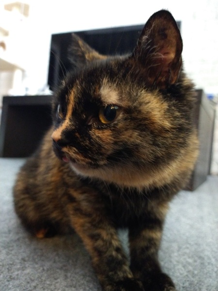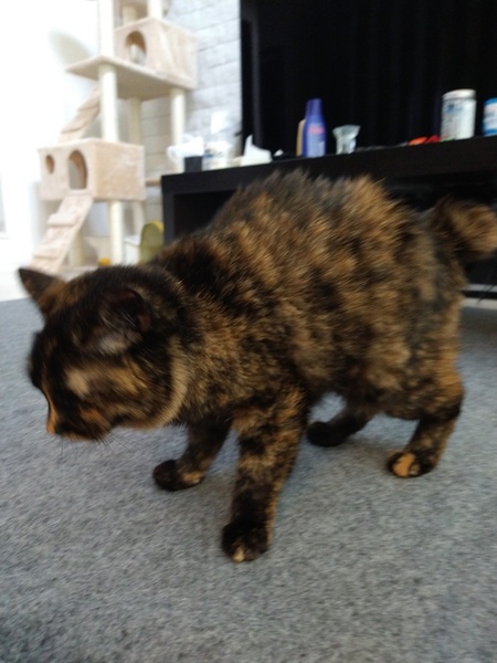 | 特徴(性格など) | 一歳になる小柄なサビ猫です しっぽが短いです 去年の6月にガリガリで皮膚病もあり瀕死の状態で保護した仔猫です 長い入院と動物病院通いを経て、今では皮膚病は完治しノミ等もいません 体重も増えました 冬に5種ワクチン接種済、避妊済みです。 保護されるまでの環境や栄養面が劣悪だったためか、おそらく手足と知的な障害があります 例としては、爪とぎをしない、階段登り降りが1段ずつ、ジャンプが下手、毛づくろいが下手、丸まったりヘソ天ができない、性格は人見や場所知りをしない(ぐいぐいくる)、1点を見つめて頻繁にボーっとする。 長所はとっても穏やかで人懐っこく、噛んだり引っ掻いたり一切しません。 甘えん坊です。 遊びが好きで、一生懸命猫じゃらしを追いかけます。 爪とぎをしないので家や家財を傷める事も無いです。 トイレで排泄できますが、環境が変わった直後は粗相してしまう可能性あります。 まん丸お目々でかわいい声をしています。 慢性鼻炎があります。 ブーブーと鼻息がしますが、一時からかなり良くなっています。 |