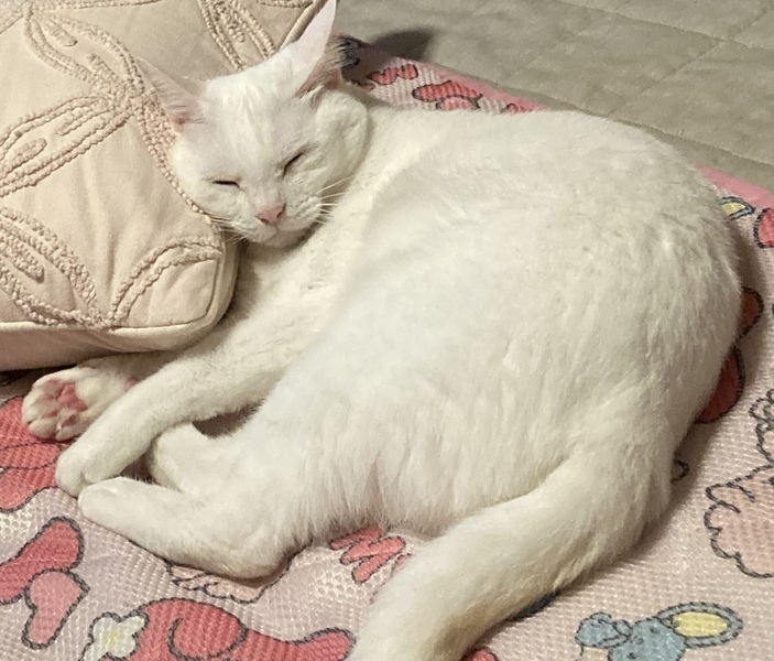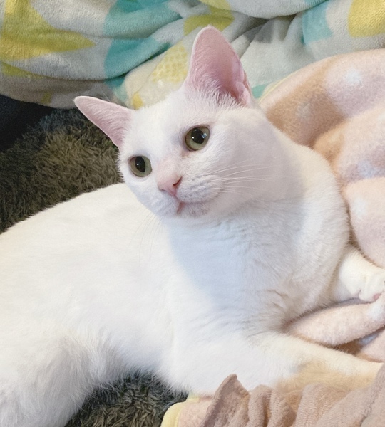 | 特徴(性格など) | まっしろな女の子です。 性格はのんびりですがビビリ屋さんです。慣れるといつも飼い主のそばにぴったりくっついて甘えたがります。 ウチに初めて来た時、最初は警戒心丸出しでしたが爪を立てたり噛み付いたりということはありませんでした。家の中を逃げまくっていました。やがて慣れると甘えて擦り寄ったり懐に収まってきました。 ウチにやって来た時は2日間ケージ内のトイレに隠れていました。ご飯も食べたり食べなかったり。3日目にケージから出てきて室内を観察してウロウロ。先住猫に警戒しつつも今では慣れたようで寄り添って寝たり、お尻を嗅ぎ合ったりしています。ケンカのような激しいじゃれあいももちろんしますが(笑)穏やかに過ごしています。 去勢、ワクチン以外に病院にかかったことはなく、その際先生に全身診て頂きますが指摘を受けた事もありません。太り過ぎ、痩せすぎなどの指摘もありません。ご飯もしっかり食べます。 ちなみにウチではカリカリです。 窓から外を眺めて人間観察、鳥観察、日向ぼっこをよくしています。 ウチでの様子はこんな感じでした。 |