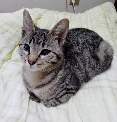 | 特徴(性格など) | 検便、ブロードライン、ワクチン済 寒さで子猫は酷い風邪の症状があり、治療しましたが、眼に後遺症が残りました 目は見えているようで、日常生活には全く問題はありません 猫じゃらしでも遊び、階段の上り下り、トイレも粗相はありません 人間も猫も大好きなようで、人馴れしていて可愛いです |