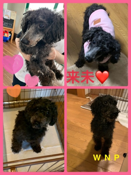 | 特徴(性格など) | 来未(くるみ) トイプードル 体重4kg 少し怖がりさんの来未。 来た日はサークルに近づくと、ビクっとして隅っこで固まっていました。 少しずつ慣れてきて、今は身構えますが抱っこさせてくれます。 人間は怖いけれどワンコは大丈夫なようで、お家ワンコとは問題なく過ごしています。 お家ワンコと一緒に部屋を走り回りますが、走るのは早いです。 慣れれば甘えん坊で活発な女の子だと思います。 来未の怖がりを理解して、寄り添って下さる里親様をお待ちしています。 |