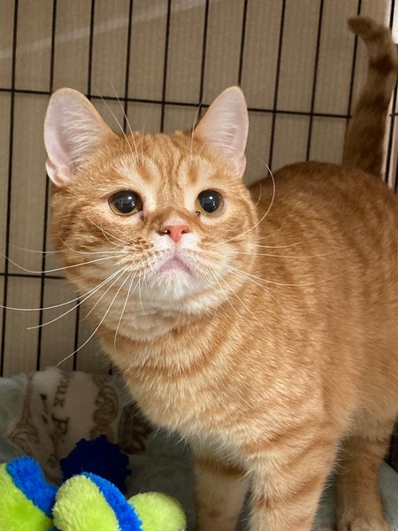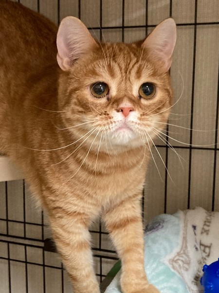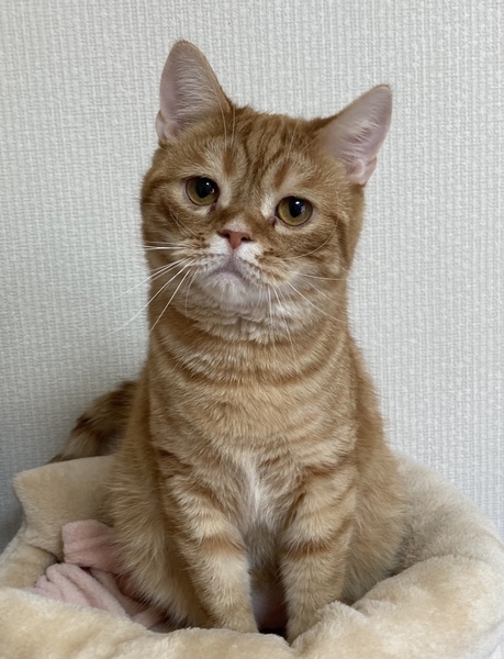 | 特徴(性格など) | スコティッシュフォールド(立ち耳) 茶トラ 成猫ですが小柄です 人なつこくとっても可愛い子です おとなしくて滅多に鳴きません 子猫の時から下痢しやすく病気ではありませんが生まれつき消化器系が弱いようです 現在は下痢は止まっていますが長期間服用していても問題がない下痢止めの薬とサプリメントを服用しています フードは2種類の療法食を混ぜて与えています |