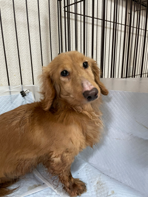 | 特徴(性格など) | ★仮名:ニック ★犬種:ミニチュアダックスフンド ★体重: 4.34kg ★性格:穏やかで全く手のかからない子です。人に慣れるのに少しだけ時間がかかりますが、慣れれば目が合うだけで尻尾を振ってくれます。 ★日常: トイレ トレーニング済み(足上げあり) 散歩 トレーニング中 運動量 普通 留守番 クレート内で過ごせる トリミング・お手入れ シャンプー、爪切り、肛門腺絞り、耳掃除が自宅でできればトリミング店にお願いする必要なし ★健康上の注意:歯石:+++ パテラ:左右G1 耳垢あり:細菌 ★注意事項: 犬の詳細はHPから預かりさんブログがご覧頂けます ↓↓↓ http://www.dogs-rescue.net/wanted-dogs ★★★次回譲渡会開催のお知らせ★★★ 4月 17日(土曜)・18日(日曜) 東京・自由が丘にて 11時~18時 (雨天中止となる場合には当日の朝8時までに代表ブログ http://blog.livedoor.jp/banibanijr/ にて中止のお知らせをいたします。) 詳細は下記のサイトよりご確認下さい。 http://www.dogs-rescue.net/event 写真よりももっと可愛い生の保護犬達に是非会いに来てください。皆様のお越しをお待ちしております。 (注)譲渡会前にお見合いが決まった仔や、体調不良の仔達は不参加となりますのでご了承ください。 ◆◇◆◇ 里親ご希望の方へ ◆◇◆◇ 譲渡会にいらして頂く事で、お話をスムーズに進めさせて頂けます。また、譲渡会でご縁が繋がることもある為、ご希望いただいた方へのご返信は譲渡会後になる場合がございます事をご了承ください。 |