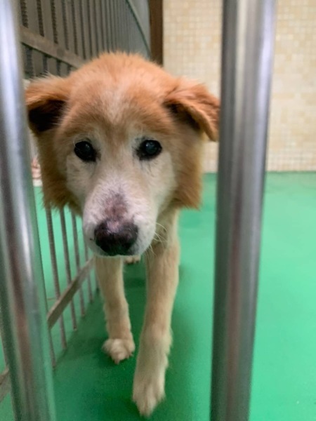 | 特徴(性格など) | フサフサした茶白の毛、垂れ耳・クリクリお目々の痩せた高齢の中型雑種 可愛い男の子 ฅ•ﻌ•ฅ 若くはないようで既に12歳は超えているのでは(推定12〜15歳位?)と思われます。 毛艶も悪く体重は9〜10キロ、可哀想に汚れていてブラッシングやシャンプーなどのケアをしてもらえていなかった様子( ; ; )大きな毛玉が出来ています。 綺麗にブラッシングやシャンプーをして栄養をつけたら見違える程もっとふわふわのイケメン君になる事でしょう(^^) 人馴れしていて穏やか、目がちょっと白くなっていて白内障の様にも見受けられます。 視力が低下しているからか急に触るとビックリしますが、ゆっくり声掛けしながら触れば大丈夫で、手からおやつをあげる時はハフッと優しく食べてくれて可愛いです(^^) 檻の前を人が通ると尻尾を振って寄ってきてくれます。掃除のモップを見ると怯えてケージに隠れるのでひょっとすると棒状の物にトラウマがあるのかもしれません… 食欲は、ドライフードだけだとあまり進まず柔らかいウェットパウチはよく食べています。 無理もありませんが出たいよ、構って〜と言う様に人の気配があったり、他の子がお散歩に行く時は僕もー!と元気にワンワン要求吠えしています。(他犬に威嚇したり近くに人が居ない時は吠えたりしていません) 大体犬舎内をウロウロしたりケージに入り寝て過ごしていますが、職員さん達が連れ出してくれるお散歩は嬉しそうฅ•ﻌ•ฅ 出だしは引きがグイグイです!足取りも普通に元気に歩きます。リードの引きも最初だけですが急な走り出しや後退りからの首輪抜け・胴輪抜けなども想定し、どんな子であっても油断は禁物で脱走、逃走には充分な配慮と注意が必要ですm(_ _)m この子のペースや体力をみながらお世話や寄り添う時間を取ることの出来るご家庭を希望しておりますm(_ _)m ⭐️必ず室内飼育で、譲渡後速やかに病院受診、健康診断、(血液検査、尿便検査、ノミダニ・フィラリア予防やシャンプー等)混合ワクチン接種をする事が可能な、なるべくお留守番が少ない、沢山優しく触れ合っていただけるご家庭。 ⭐️狂犬病予防接種、フィラリア予防や混合ワクチン実績の有無は不明です。 ⭐️高齢の為室内でのトイレトレーニングは難しいかもしれません。 未去勢で片足を上げて排尿します。 この点も踏まえ、何かと手がかかり大変ですが(マナーベルトやL字型のトイレ、ペットシートを用意など)覚悟と理解で受け入れて下さる方。この子が穏やかに過ごせる温かなご家庭で、触れ合い見守っていって頂きたいと願っております。 宜しくお願い致しますm(_ _)m ⭐️出来れば中型犬の飼育経験があり愛情を持って犬と接することが出来る方、この子の年齢を考慮し、体力を見つつお散歩や運動、コミュニケーションに時間をあてられる方、場合によりトレーニング教室なども視野に入れて考えてくださる方。 何卒宜しくお願い致します。 ⭐️吠えても大丈夫なご家庭 ⭐️この子と共に過ごせる時間があとどの位残されているのか、分かりません。 いずれは介護、看取りも必要になってくるでしょう。 以上の点を踏まえ、この子の置かれている状況、傷ついているであろう心をご理解の上、全て受け入れ、寄り添いながら愛情を注いでくださるご家庭で余生を可愛がっていただきたいと願っております。 保健所収容された全ての子達は身勝手な人間による被害者であり、何も悪くありません( ; ; ) 首輪はしていましたし今まで、人間を信じ、人間と共に生きてきた筈です。 1日も早く温かな愛情を目一杯注がれながら、元気に幸せに生きてほしいです。人間より遙かに短い生涯です。 冷たく硬いコンクリートの上、狭い檻の中でひたすら優しい素敵な里親様を待ち続けています。 悲しい事にこの世の中、人間に飼われないと犬は生きていく事が出来ません。 捨てる飼い主、探さない飼い主、医療にかけない飼い主、虐待する飼い主…飼い主を選ぶ事も出来ません。家族を必要としています。 最期は大切な家族の一員として、この子の全てを受け入れて下さる、優しい素敵な里親様の元で穏やかな余生を過ごしてほしいです。残るこの子の犬生を生涯大切に可愛がって下さる優しい素敵な里親様、どうかお願い致しますm(_ _)m もうこれ以上悲しく辛い目に遭わせたくありません。本当の愛情、温もりを知ってほしい、辛かった分、寂しかった分、今後はのびのびと幸せいっぱいに愛し愛されて、生きてほしいと願っております。 家族の一員に迎え、愛情溢れるご家庭で一緒に暮らして頂けませんか。 何卒宜しくお願い致します(๑•ᴗ•๑)♡ https://dog.benesse.ne.jp/lovedog/content/?id=15698 ◆健康状態 ☆収容当初から食欲あり、ご寄付で送って頂いた栄養価の高い良質なフードと缶詰、ウェットパウチを食べていました。 下痢をしておさまった4/15に食欲が落ち血便が出たので診察したところフィラリアは陰性、腎臓の機能が低下で消化不良だった為、