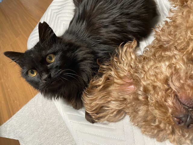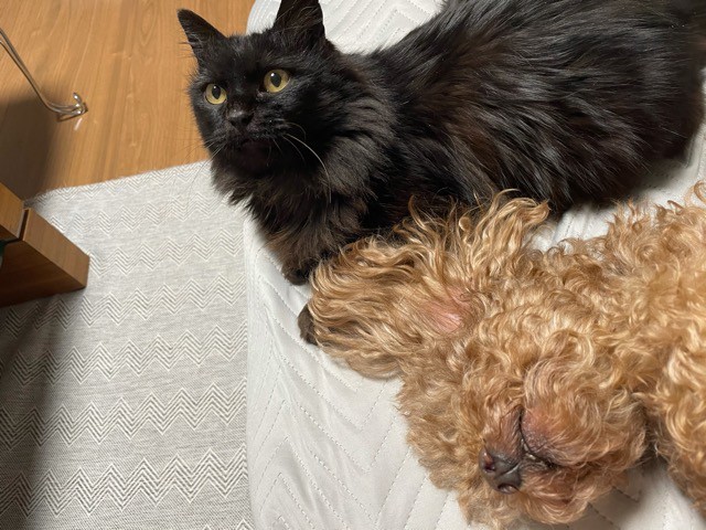 | 特徴(性格など) | 【仮名】ふぷ 【毛色】ブラック(長毛) 【性別】メス 【避妊】済 【ワクチン】済 【駆虫】済 【猫エイズ・白血病】どちらも陰性 【健康状態】良好です。 【性格】もともとは飼われていたと思われる子ですが、お外で頑張って子育てをしていました。 臆病で人が近づくと逃げますが、抱っこすると顔をこすりつけてきて甘えます(^^) たまに気に入らないことがあると、猫パンチがでますが爪も出さずに形だけの猫パンチです(笑) 子育て経験があるので、ほかの猫に対してもなれると友好的です。 犬も慣れれば平気で一緒に追いかけっこをしています(=^・^=) |