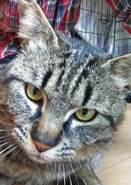 | 特徴(性格など) | 黒のキジトラ ところどころ茶色。 体重は7kg! はじめはボス顔でしたが、だんだん穏やかな表情になってきました。 ゴロゴロ喉をならしスリスリしてきます。 くっついているのが好きです。 おもちゃでも、なんとなく下手ですが遊びます。 病院で3歳くらいだね、と言われました。 |