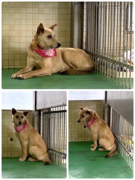 | 特徴(性格など) | 中型雑種、淡茶色の可愛い優しい女の子、大人しく人馴れしていてまだ5歳未満位に見受けられます。 現在の体重は見た目の推定になりますが大体15キロ前後位でしょうか。 普通に飼育されていた犬ではないと思われ、首輪や係留やリードでのお散歩の経験が乏しいように見受けられました。放し飼いか、放浪期間が長かったのかもしれません。お座りやマテなども知らないようです。 ですが人馴れはしている様子で尻尾を振って寄ってきますし、誰が撫でたり触ったりしても大丈夫で大人しく、手から上手におやつも食べてくれてとても愛らしいです♡そっと寄り添って甘えてきます。 穏やかで優しく、人や他犬に吠えたりもしていませんฅ•ﻌ•ฅ とても一緒に暮らしやすい子だと思います。 優しい職員さん方が怖くないよ、今度こそは幸せになれます様にと毎日触れ合いながら、一生懸命にお世話してくださっています。 リードを付けた経験が無いのか?収容当初はリードを見ても喜ぶどころか、付けるとまるで蛇か何かのように非常に怖がってパニック状態になり、リードを噛み切ろうとして嫌がって、外すと急いでケージに逃げ込んでしばらく怯えて出てこなくなってしまう状況でした(>_<) 過去によほど怖い、悪い思い出があるのか知る由もありません( ; ; ) ですが職員さんが根気強く練習を続けてくださり、今ではリードを見せると尻尾を振って犬舎の扉に来るようになりました(^^) まだ引っ張ると首を振って嫌がったり、行きたくないと後退りしたりリードを噛んだりするものの、管理所内や運動広場、直ぐ横ですが外の遊歩道まではお散歩出来ています! リードの引きも無く歩けるようになり、今度は逃げようとする仕草が見られるので、逃走・脱走には益々の注意が必須ですm(_ _)m 新しい環境に慣れるまではまだしばらく時間を要するかと思われます。 物音や知らない場所にビックリして怖がって逃げよう逃げようとする可能性も大いにある事だと思いますし、急な走り出しや高い塀や壁・柵の飛び越えや、急な方向転換・首を振って後退りからの首輪抜け、胴輪抜けにもご用心で、どんな子であっても脱走、逃走には充分な注意と配慮が必要ですm(_ _)m 適切に制御し、躾や朝晩のお散歩、運動の時間をしっかり取ることの出来る、沢山優しく触れ合って頂ける方、 先ずは室内でじっくりと時間を費やし触れ合い、ゆっくりと信頼関係を作っていく事の出来るご家庭を希望しております。 人間が焦らずにゆっくり長い目で見守りながら、愛情を持って接すればこの子ならきっといつか新しい家庭に馴染んでいけるのでは、と思い祈っています。 辛かった過去がある事も踏まえ、人は怖くないんだよと、人を信じてくれる様に、例え長期戦でも広い心でドンとこい^_^と仰って頂ける方、この子を尻尾フリフリ♪ニコニコの笑顔にしてくださる方、いらっしゃいませんか? どうぞ宜しくお願い申し上げますm(_ _)m ⭐️必ず室内飼育で、譲渡後には速やかな病院受診・健康診断(血液検査、尿便検査、ノミダニ・フィラリア予防やシャンプー等)避妊手術、混合ワクチンをする事が可能な、なるべくお留守番が少ない、沢山優しくスキンシップやコミュニケーションで触れ合っていただけるご家庭。 ⭐️室内でのトイレの躾も1からとなります。 管理所ではほぼ100%ペットシートに排泄が出来ています(^^)お利口さんです♡ ※でも新しい環境に慣れるまではトイレの失敗もあるかもしれません。 何かと手がかかり大変だと思いますが覚悟と根気・理解で受け入れて下さる方。 ※譲渡後にはお早めの避妊手術、その際に歯石除去も一緒にお願いしますm(_ _)m ⭐️出来れば中型〜大型犬の飼育経験があり愛情を持って接することが出来る方、朝晩のお散歩や運動、スキンシップやコミュニケーションに充分時間をあてられる方、もし怖がってなかなかお散歩が出来ない場合には、引きこもりにならぬようトレーニング教室なども視野に入れて考えてくださる方。 何卒宜しくお願い致します。 ※混合ワクチン、フィラリア予防実績の有無は不明です。フィラリア陽性の可能性も0では無くあり得る事となります(>_<) ⭐️(今のところ吠えませんが)吠えても大丈夫なご家庭。 以上の点を踏まえ、この子の置かれている状況、寂しかった、傷付いているであろう心をご理解のうえ、全て受け入れ寄り添っていただけるご家庭で終生可愛がっていただきたいと願っております。 保健所収容された全ての子達は身勝手な人間による被害者であり、何も悪くありません( ; ; ) 家族の一員として生涯大切にしてくださるご家庭とのご縁が結ばれ、嫌な檻の中では無い、優しい家族の皆さんとずっと一緒に居られる温かなお家が見つかります様に。幸せになれます様に☆⭐︎ 1日も早く温かな愛情を目一杯注がれながら、元気に幸せに生きてほしいです。人間より遙かに短い生涯です。 冷たく硬いコンクリートの上、狭い檻の中でひたすら優