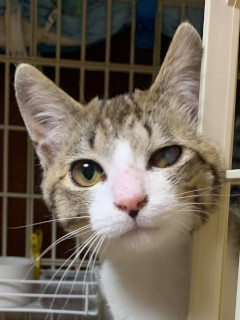 | 特徴(性格など) | ☆★☆★現在お見合い予定がございます☆★☆★ 仮名を『がんも』と言います。 TNR現場より保護されました。 尻尾はすらっと長く真っ直ぐです。 左眼がお外時代の猫かぜの影響で、白濁が残ってしまいました。 ですが、至って元気に他の仔たちと変わりなく、室内での日常生活支障なく送れています。 治療も終了となります。 がんもは最初だけ人見知りありますが、人間が大好きな甘えん坊なので、直ぐに仲良しになれるのではないでしょうか。 身体全体でストレートに気持ちを表現してくれて、スリスリが止まりません。 性格も温和で、猫と初めて暮らす方でも、お迎えしやすいのではないかと思います。 愛情と責任を持って、がんもの全てをまるっと包んで受け入れていただけます方。 たくさん甘えさせてくださる方。 猫好きな先住猫さんのいるお家。 シェルターで暮らす他の仔と二頭一緒に。 そんなご縁を望んでいます! 最高の家族、最高のパートナーになってくれると思うのです。 愛らしいがんもに会いに来てくださいね! 【医療処置情報】これから実施のも含まれます *健康チェック *3種混合ワクチン接種 (年1回定期的にしております。詳細はお見合い時にお知らせいたします) *ウイルス検査実施(FIV.FeLV共に陰性) *検便実施 *駆虫薬投与(レボリューション、ドロンタール) *マイクロチップ装着 *不妊・去勢手術 |