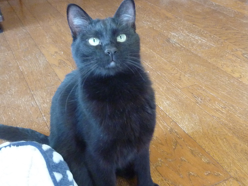 | 特徴(性格など) | 黒猫の男の子 とても人なつこく甘えん坊 だっこは苦手ですが、ひざの上は大好きですぐに乗ってきます よく食べ、よく遊ぶ健康な子です エイズ 陰性 白血病 陰性 |