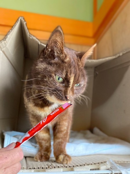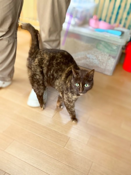 | 特徴(性格など) | 茶色が多いサビ柄の女の子です。 保護当時から甘えたさんで人が大好きな子です。 スリスリしてきてくれます。 新しいお家でもきっと動じない子だと思います。 一般的にサビ猫は賢く、愛嬌・協調性があり、初心者でも飼いやすく、多頭飼いにも向いており、母性が強く愛情深いと言われています。 さつきちゃんはエイズキャリアです。 もちろん現在、発症はしておりません。 そして人に感染することはありません。 エイズウイルスキャリアの子でも、ストレスのない生活を送ることにより発症することなく、天寿を全うする子が多いと言われています。 さつきちゃんを、見て頂き可愛さを実感して欲しいです。 元気に過ごしています。 ・避妊手術済み ・ノミダニ回虫駆除済み ・エイズ(+)白血病(−) ・健康診断済み ・3種予防接種済み |
