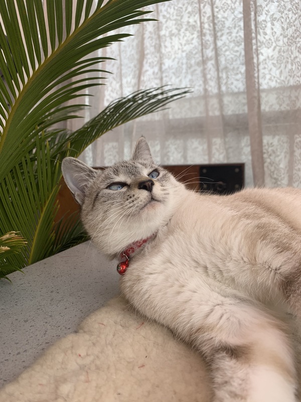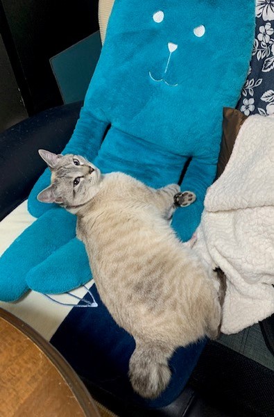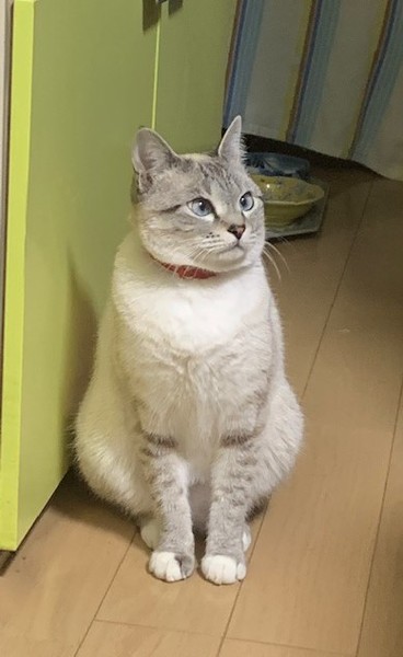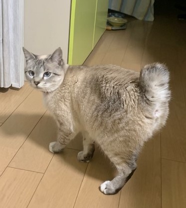 | 特徴(性格など) | ボブテイルで、薄茶の毛。目はブルーです。表情豊かで、性格もかわいいです。膝にのりたがり、布団にも入ってきて、甘えます。わりに言うことをききます。ダメというと、それ以上悪さをしません。 | ||
