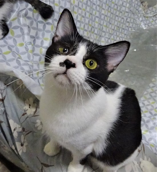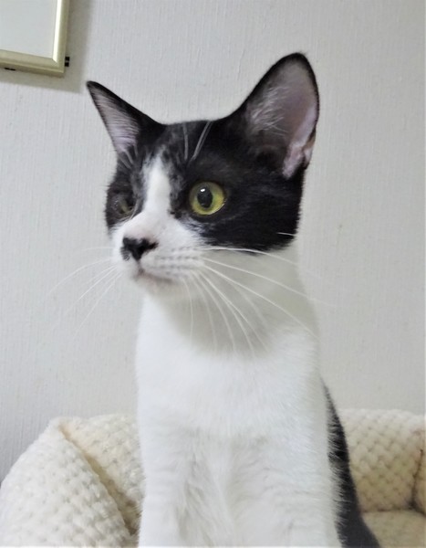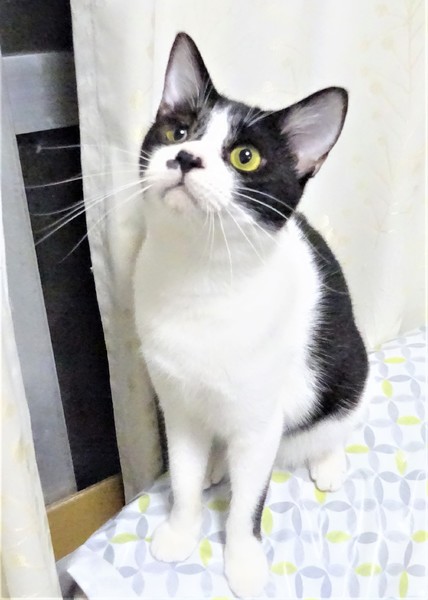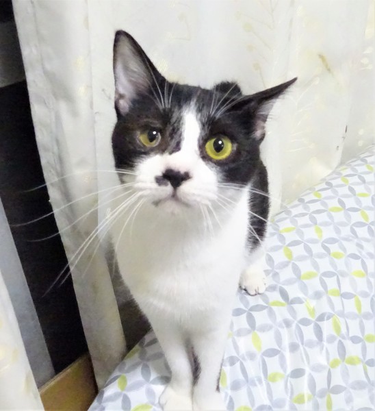| 特徴(性格など) | 仮名: 夢香ちゃん(メス) 毛色: 白黒、ジャパニーズボブテイル 性格: 人嫌いではないので、威嚇なく抱っこ出来しますが、どちらかというとじっくり抱っこされるのは好きではないようです。 甘えたりもしますが、自分から甘えるタイプではなく、マイペースな感じです。 目の瞼に形成不全があり、手術をしましたが、目は左右大きさが違うように見えます。 そちらの方の目が涙目になりやすく、後遺症があるのだと思います。 ただ普通の生活が出来ていて元気です。 ケージにいる時も特に出せと騒がないし、まったりしている事が多いです。ご飯の時は自分からケージに入って待っている頭の良い子です。 ノミ取り済 検便済 駆虫済 3種混合ワクチン済 猫エイズ・白血病ウィルス検査は共に陰性です 避妊手術済 |