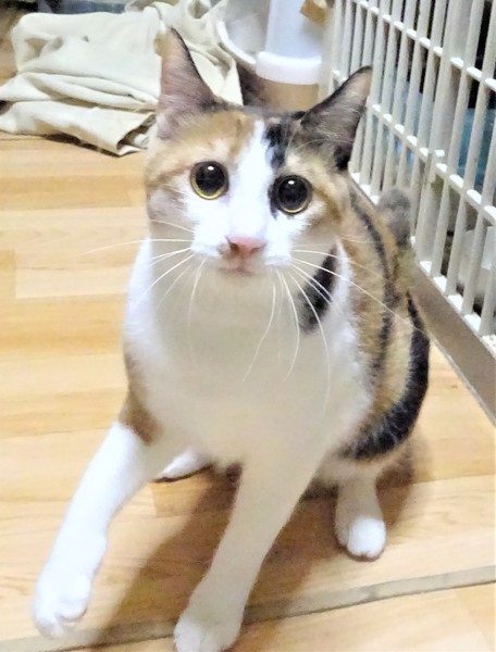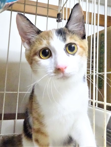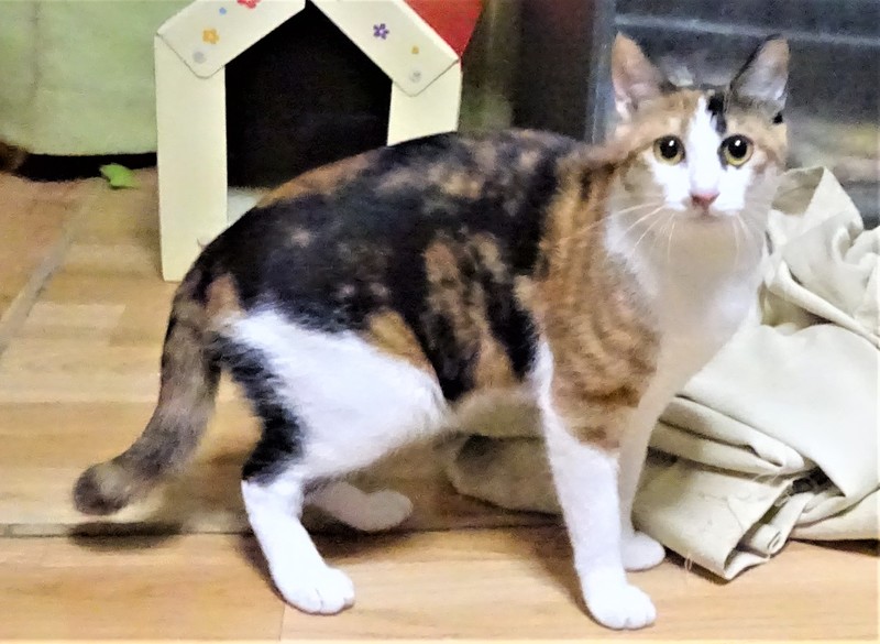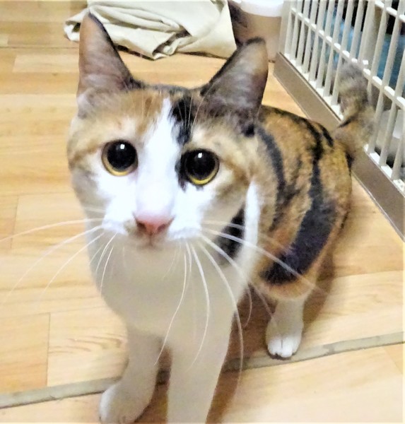 | 特徴(性格など) | 仮名: りんごちゃん(メス) 毛色: 三毛猫 性格: 威嚇なく触れますが、とにかくビビリなので、ビックリ顔です。 でもご飯の前には必ず触るという事がわかっているので、自分から触ってちょうだいポーズを取るようになり、触らせてくれます。抱っこは怖いみたいなので、まだ学習中です。 大勢の猫も怖いようですから、大丈夫な猫と一緒に部屋に出すと、一緒に遊ぶというのでなく、探検したりしています。 ちょっと大きな音がしたり、人が部屋に入ってくるとすぐにケージに逃げます。 ケージが安心出来るようですので、2段ケージをお使いになると馴れるのも早いと思います。 ビビリなので、馴れるまでに時間がかかる事をご理解頂けるかたで、猫飼い初心者の方よりも、ビビリの子を育てた事がある猫飼い経験者の方を希望致します。 のみとり済 検便済 駆虫済 3種混合ワクチン済 猫エイズ・白血病ウィルス検査はともに陰性です 避妊手術済 |