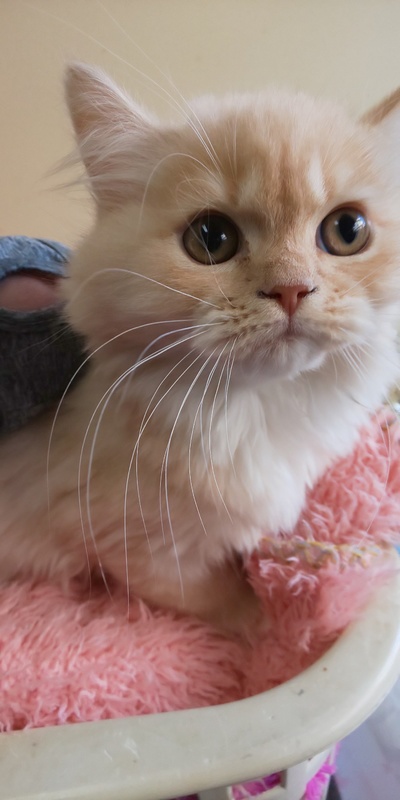 | 特徴(性格など) | ふわふわの長毛でやや茶色味の強いクリームです 少しびびりな所はありますが、好奇心旺盛で猫じゃらしが好きです だっこはあまり好きではないようで嫌々しますが自分で肩に登ったり腕枕でゴロゴロしてくれるかわいいこです |