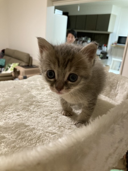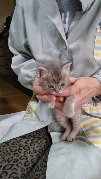 | 特徴(性格など) | お顔はキジが入っています、色はグレー系。体重350グラム程、すくすく成長しています。動物病院に一度連れて行き、検便しまして、異常無し。性別、女の子かも知れないと言われました。 | ||