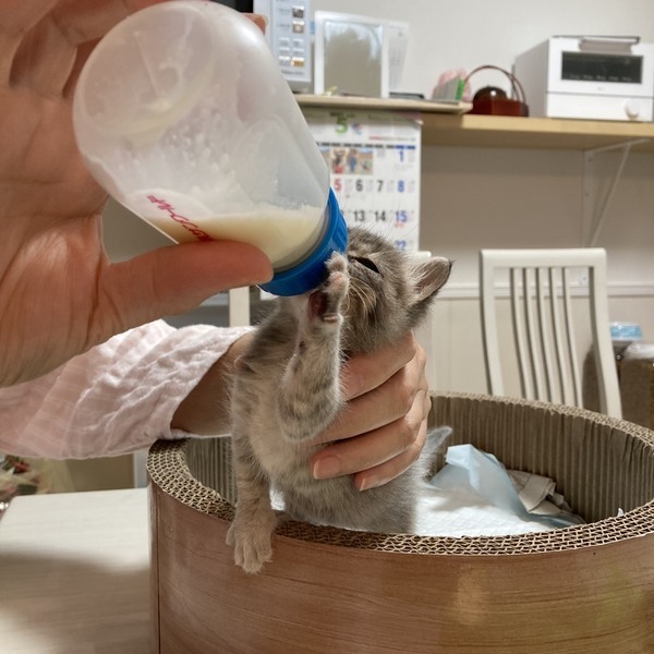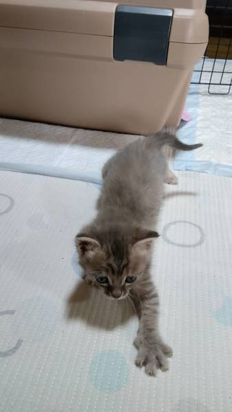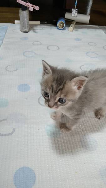 | 里親募集する理由 | 実家の近所の野良猫が仔猫を産みました。保護したのが生後2週間くらいの頃で、現在生後34日程になります。まだミルクを与えていますが、やり方はお教え致します。排泄は自力で排便出来るようになって来ていますが、お手伝いが必要な時もあります。 実家には猫4匹飼育していますので、大事にして下さる里親様を募集したいと思います。 |