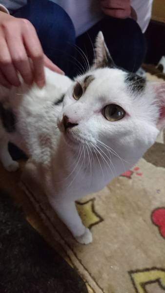 | 特徴(性格など) | 白と黒っぽい色が混ざった柄です。 結構人見知りをしますが、慣れれば猫ちゃん自ら甘えてきます。足元に擦り寄ってきて可愛いです。抱っこされるのも大丈夫です。 ぐーたらな感じでくつろぎます。 猫ちゃんの顔の周りにお肉がついていて丸くて可愛いです。 尻尾が折れてしまっています。痛々しい傷とかはありません。 |