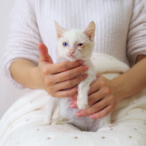 | 特徴(性格など) | ★健康状態★ 毎日元気いっぱいに遊び ごはんもたくさん食べて健康状態は良好です。 ☆3種ワクチン2回接種済み ☆内外駆虫済み(便検査異常なし) ☆猫エイズ、猫白血病の血液検査陰性です。 ☆不妊手術済み ☆保護時、風邪の症状があり治療回復しています。 現在の半年ほどの男の子です。 (お誕生日は10月中旬頃だと思います) 保護時は ひどい風邪の症状があり治療を続け回復しました。 しるこくんは両目の炎症がひどく 毎日、数回の目薬や軟膏、目の洗浄とお薬を飲み 治療を続け回復しました。 ★性格とチャームポイント★ ☆しるこくん☆ 生後半年の男の子です。 昨年末の12月24日 クリスマスイブの日に 県内の保護ボランティアさん宅より 8にゃんで我が家へやって来ました。 ❁性格とチャームポイント❁ ふわふわの真っ白ボディーに 透き通ったブルーの瞳 小柄でかわいいしるこくんです。 保護時、風邪の症状がひどく 元気がなくしらたまちゃんと一緒に じっとしていることが多かったしるこくん 目薬やお薬を頑張って 今ではとっても元気いっぱいのわんぱく坊や。 おしゃべりが大得意で ごはん!おもちゃ!なでなで!と 8にゃんの中で身体は一番小さいけれど 一番自己主張が強い甘えん坊の王子さまです。 ❁その他❁ 通院や爪切りブラッシング、おトイレなど 上手にできます。 甘えん坊で優しい性格なので 猫ちゃんと暮らすのが初めての方 小さなお子さまがいらっしゃるお家でも 仲良く暮らせる猫ちゃんだと思います。 ❁仲良し兄弟で一緒に❁ 同時に保護した8にゃんと しらたまちゃん(里親さま募集中) しるこくん(里親さま募集中) おもちくん(里親さま募集中) かしわくん(里親さま募集中) おはぎくん(里親さま募集中) ベルちゃん(里親さま募集中) もみちゃん(里親さま募集中) わたあめくん(現在治療中) いつも一緒、とても仲良しです。 子猫同士で一緒に成長することで 遊びながらいろいろなことを学びます。 お外で暮らしていた時 体調が悪い時も支え合って頑張ってきた 絆の強い8にゃんなので 2匹以上で一緒に迎えていただけるお家とご縁がありましたらうれしいです。 ❁インスタグラムをご覧下さい❁ 保護からこれまでの治療経過や 毎日の様子をインスタグラムに投稿しています。 ぜひかわいいみんなの普段の様子をご覧ください。 @fuuchannel プロフィールのURLからもアクセスできます。 ❁写真の補足❁ 7枚目…仲良し姉弟のしらたまちゃんと 8枚目…保護されたばかりのしるこくん お薬頑張りました。 |
