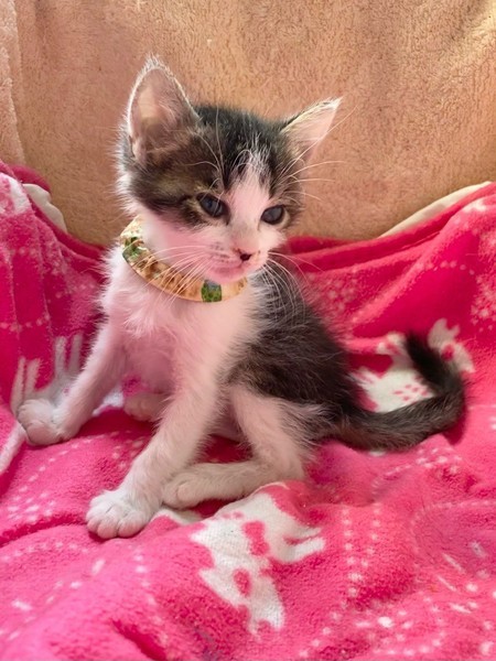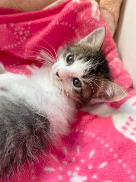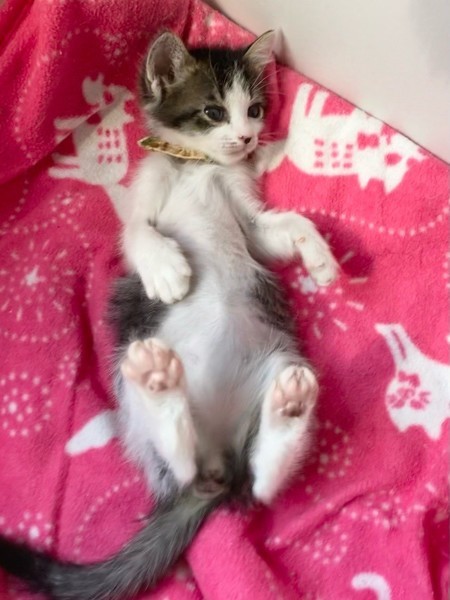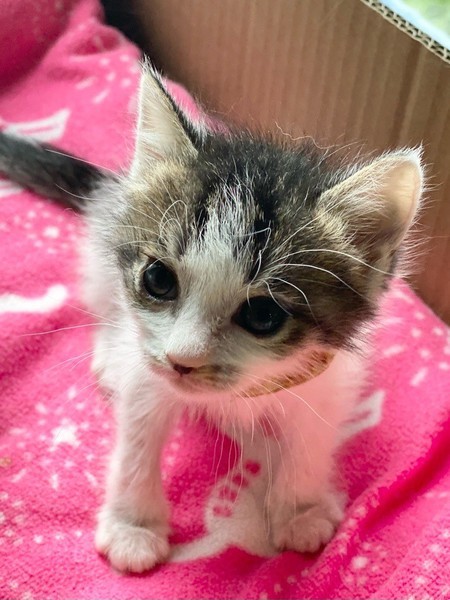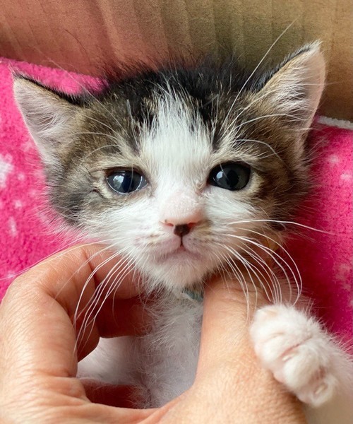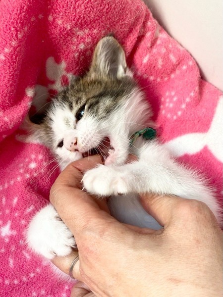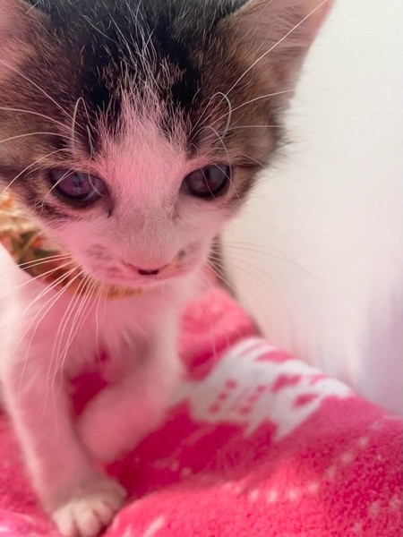 | 特徴(性格など) | ちょっと控えめ?なマイペースお嬢ちゃま「ミモザ」ちゃん❤ 生後10日ほど200g弱での保護、人の手で育てられたので甘えっコ♪ 気分次第ではちょこちょこ一人遊びしたり、膝の上に乗ってきて甘えたり♪ 現在ドライフードやパウチ練習中ですが、なかなか食べてくれず、一日4回離乳食中。 <推定誕生日:3月上旬> |