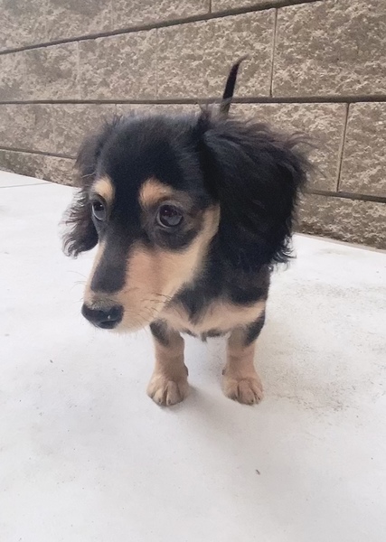 | 特徴(性格など) | ブラックタンよりのブラックイエロー 耳が大きく前に向いていて毛がパーマのようになってて可愛らしい顔の子です! 人懐っこく、元気いっぱいでお腹出して触って欲しい!ってしてきます! 慣れないところだと抱っこしてても少しブルブルする怖がりな所もありますが、すぐに慣れます! 今のところ吠えません!ただクンクン鳴く事が多いです。人がいなくなるとすぐ鳴きやみます。 子犬なので手や物等甘噛みします。 トイレもケージ内のみシーツの上でできます! |