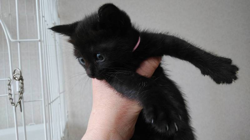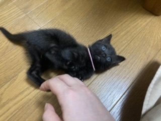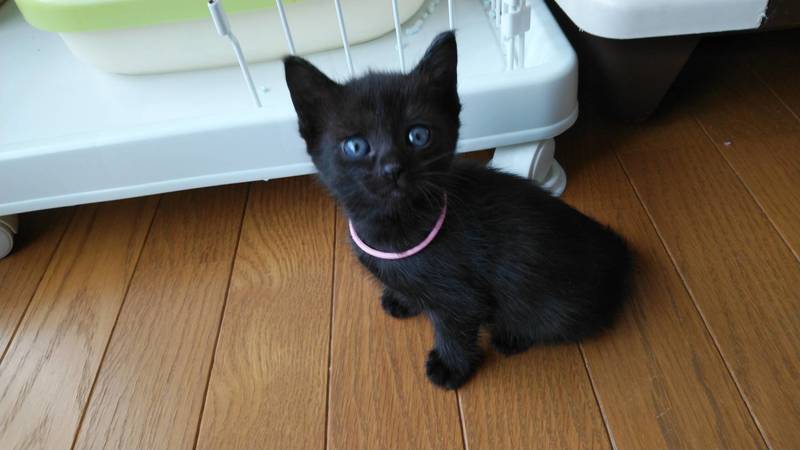 | 特徴(性格など) | ※応募が多数の場合、仲良し5兄弟なので兄弟一緒に2匹などで貰っていただける方を優先させていただきます。 兄弟一緒に行けると、子猫はお家にも慣れやすいですし日中お家に人がいないお家でも寂しくありません。 【見た目】 ピンクの細い首輪をした短毛の子です。 体重 500g(4月29日時点) 短毛の黒猫です。 ちょっぴりたれ目な女の子。 少し小柄な体格です。 しっぽは長くてまっすぐ。 シュッとした、黒猫らしい子です。 肉球はちゃいろ。 目の色は茶色?カッパー? 【性格】 すっかり人に慣れてくれました。 兄弟の中で一番小さな子で、ちょっとたれ目。 小さくても元気は猫一倍! お膝によじ登り、人の指にじゃれつき、ゴロゴロと喉を鳴らして可愛く甘えてくれます。 奥ゆかしいところもあって、遊びたくてもご飯が食べたくても、他の猫に少し遠慮してしまうことも。 それがまた可愛らしいです。 兄弟ネコとはよく一緒に遊んでいます。 ただ、やはり体が小さいので猫プロレスは一番負けています(笑) それでも、しょっちゅう勝負を挑んでいく、諦めない勇気を持つ猫です。 少し臆病ですが、子猫なので新しいお家や先住猫相手でも問題ないと思います。 できれば、兄弟一緒で家族になれると嬉しいにゃ(’ω’=) 【健康状態】 動物病院でのノミダニ駆除や診察は済んでいます。 たまに下痢をしていますが、基本的には元気です。 月齢の関係で、感染症等の検査は行っていません。 |