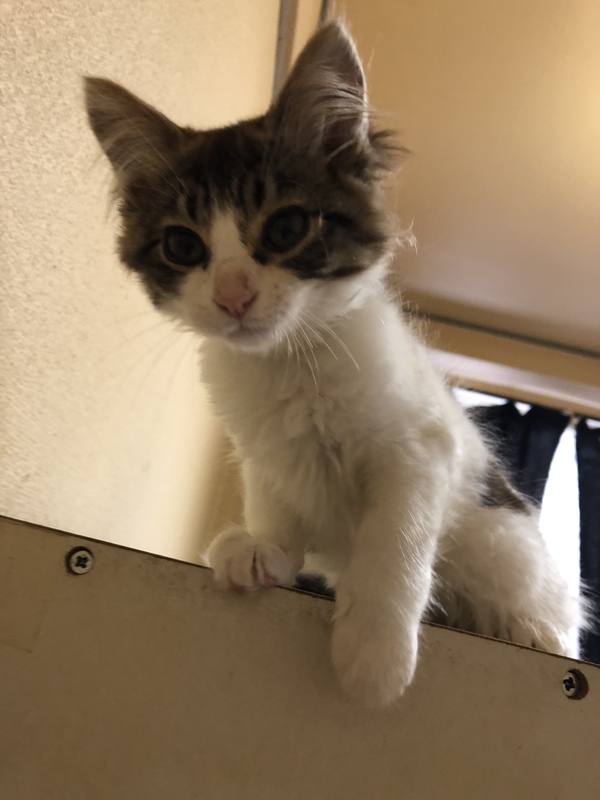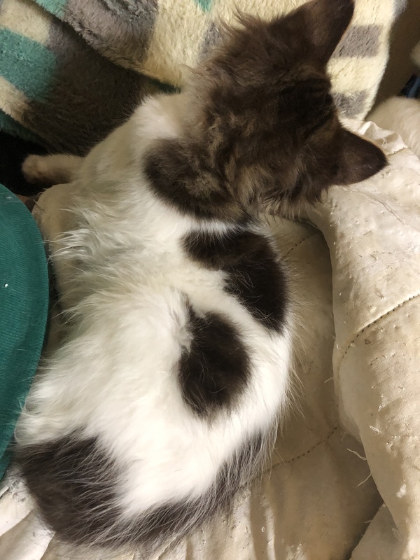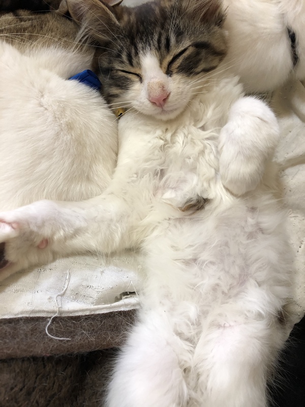 | 特徴(性格など) | 姉妹の妹ちゃん(次女) 白と黒のウシ柄 短毛より少し長め 膝の上に座ってきたり 人間がゴロゴロしてるといつの間にか子猫を腕枕をしています。 ご飯はカリカリの ねこ元気 まぐろ を食べています。 トイレトレーニング済み |