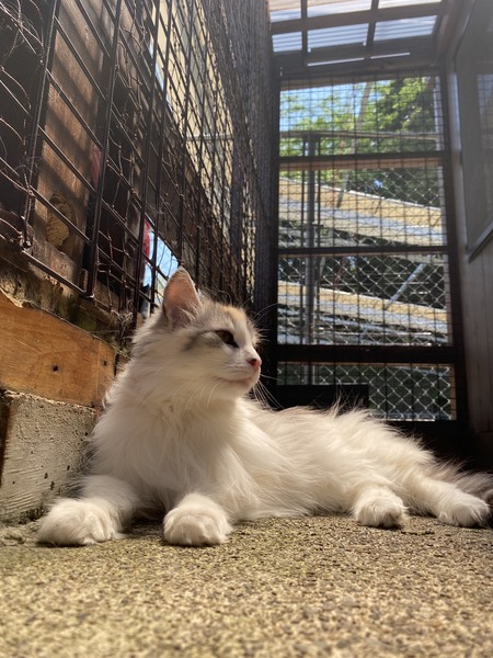 | 特徴(性格など) | 好奇心が旺盛で新しい物を置くと1番に見に来ます。 来て間もないですが撫でさせてくれたりと、人懐っこい一面を見せてくれています。 |
