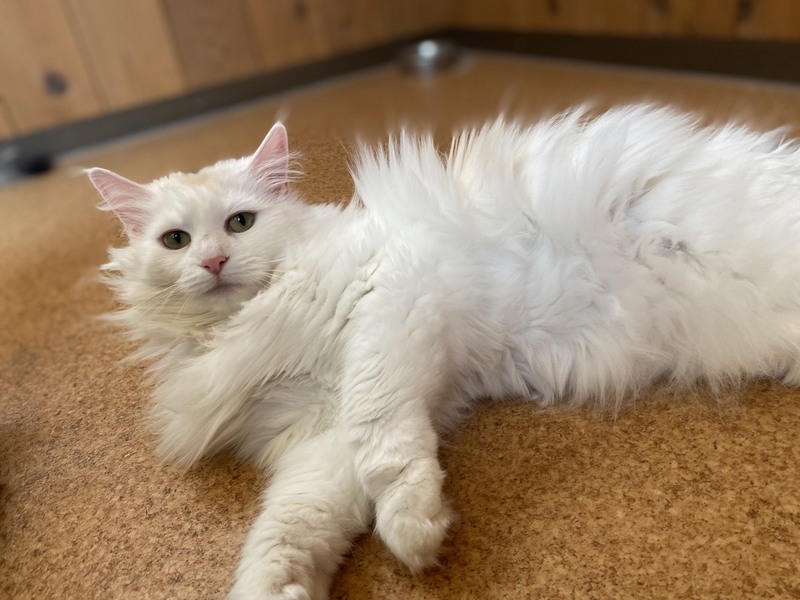 | 特徴(性格など) | キャットウォークなどでくつろいでいることが多いです。 まだ来て間もないので少し緊張している様子はありますが、嫌がったり逃げたりせずに触らせてくれます。 |
