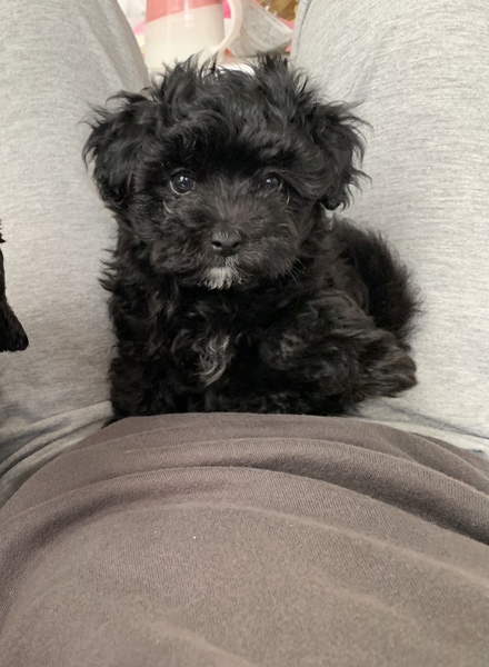 | 特徴(性格など) | 黒のマルプー(マルチーズ ×トイプー)ミックス犬です。体はほとんどが黒ですが、所々あごや胸、手の裏などは白い毛が生えております。性格はとても元気で人懐っこいです。 | ||