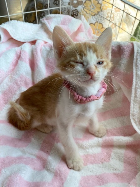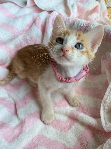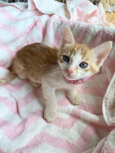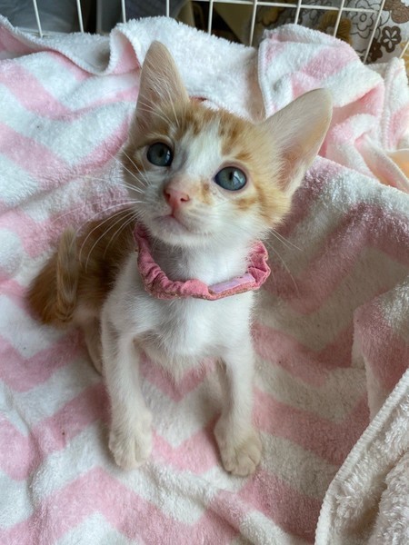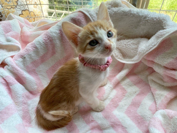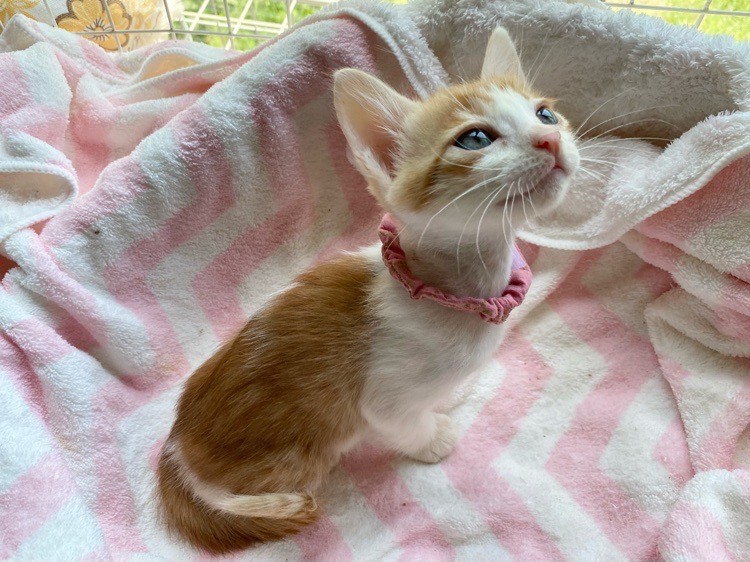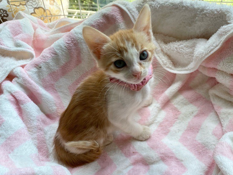 | 特徴(性格など) | マイペースお嬢さま「パール」ちゃん❤ 好奇心旺盛で他の兄弟たちビビってるのに、あたち行ってみるわっ!!な逞しい女のコ♪ ひとりでゆったり過ごすのも大好き♪もちろん人も大好き♪ 現在ドライフードやパウチ練習中。パウチも自身で食べてくれるようになっていますが、まだまだ摂取量が足りず、一日4回、哺乳瓶やシリンジ等での離乳食を与えています。 <推定誕生日:3月中旬> |