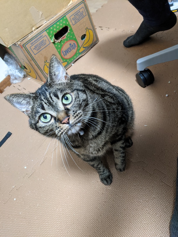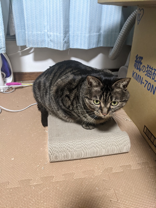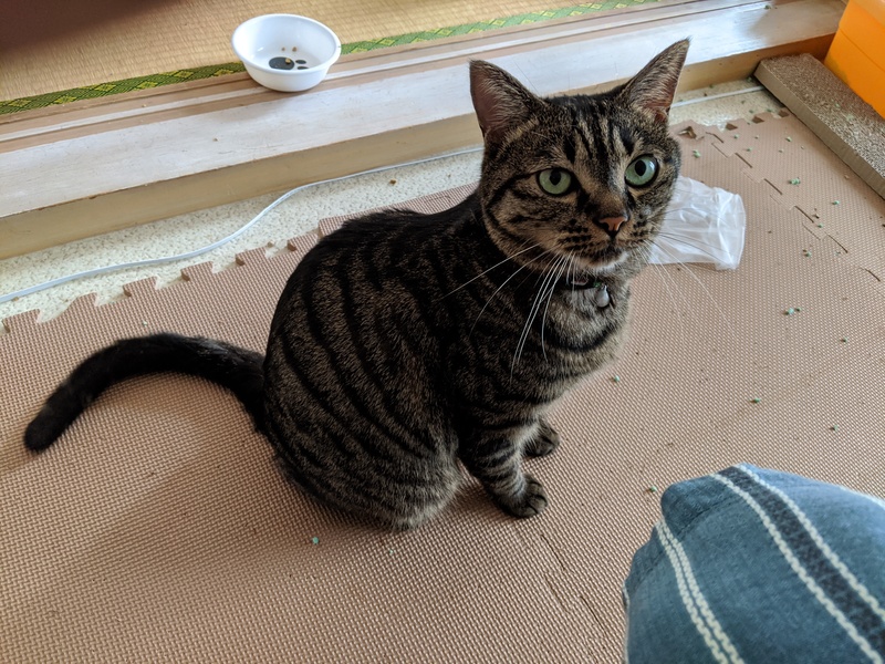 | 特徴(性格など) | 人間のことを大変信頼している猫です。 部屋を荒らしたりもしない、いい子です。 食事をするときも人間が近くで見守ることを好みます。餌を目の前にしながら人間を見てるときは撫でてあげると食べ始めます。 添い寝もしてくれますよ。 掃除機は大嫌いです。 色はキジトラです。 |