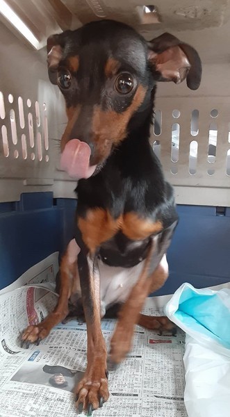| 特徴(性格など) | 仮名前:しのぶちゃん 犬種:ミニチュアピンシャー 性格:保護間もないのできちんとした性格は把握できていませんが、 室内フリーだと問題ないですが、ケージに入れるとギャンギャン吠えます。 他の犬が苦手なようなので、先住犬の居ない1頭飼いでお願いします。 子供が苦手なため中学生以下の子供のいるご家庭はご遠慮ください。 *備考・その他(譲渡条件など)をお読みになって応募ください。 |
