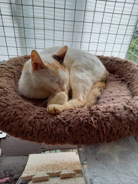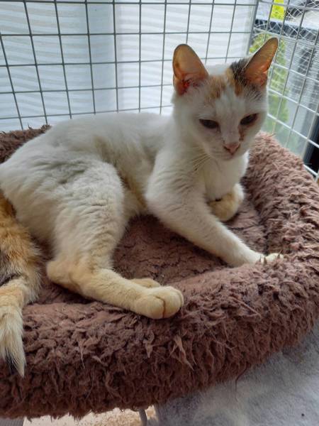 | 特徴(性格など) | 白三毛のマンチカン女の子です。 短足ではありません。 小さくて人懐っこい子です、 食欲もありトイレも大丈夫です。 今まで猫らしく自由に遊んだりできませんでした。 繁殖の時以外はケージ生活でした。 これからは 走り回ったり日向ぼっこしたり甘えたりして 自分の為に生きてもらいたいです。 |