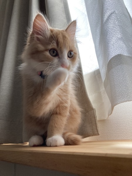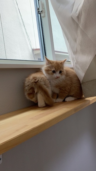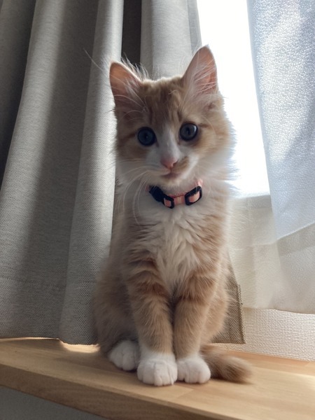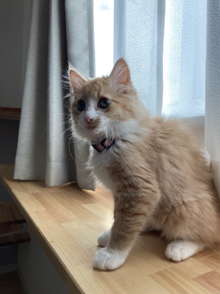 | 特徴(性格など) | 茶白で、長毛の女の子です。 人の上に乗って甘えたり、鳴いて呼んだりする甘えん坊さんです。 |