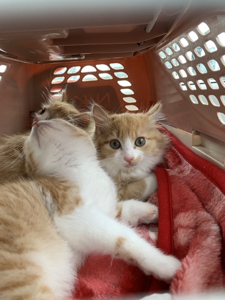 | 里親募集する理由 | 車通りの多い道のすぐ脇で、母猫と三姉妹で暮らしていました。 交通量が多く、最悪な事態も想定できるため、保護して家猫修行をし、家族探しをすることになりました。 |