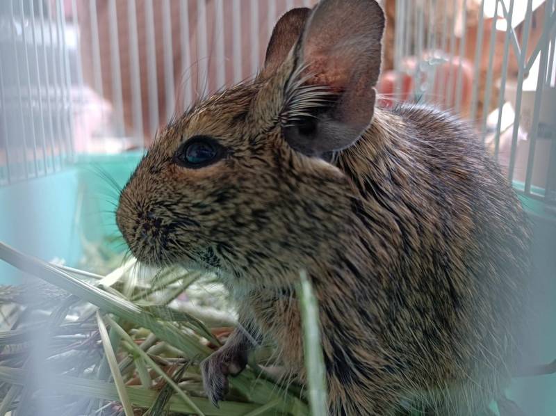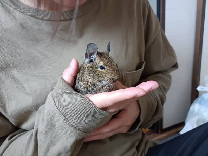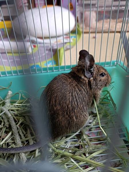 | 特徴(性格など) | ノーマルな茶色の女の子です。 デグーはよく鳴く子みたいなんですが この子は鳴くことが少なく性格は穏やかです。 まだ人なれしてなく、アゴの下を少しカイカイ させてくれる程度です!! |