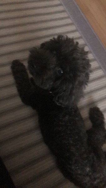 | 特徴(性格など) | 黒のトイプードルの男の子です。 とても人が大好きで来客時には吠えますが噛み付く事なく 隣にきて撫でてアピールをします。甘えん坊です。 左眼白内障緑内障→点眼薬あり その他はこの10年間病気をした事がなく元気です。 今年度の狂犬病のワクチンはまだ接種できておりません。 |
