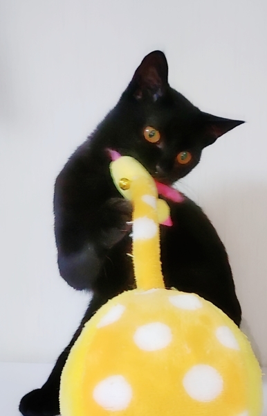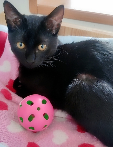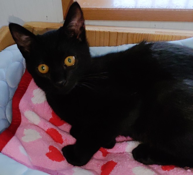 | 特徴(性格など) | 特徴 綺麗な艶黒。短いシッポ 性格 最初ピクッとしますが すぐに慣れゴロゴロ♪ 先住には積極的にご挨拶 威嚇されると離れしつこく する事もなくめげる事もなく 様子を伺いながら 一緒に遊ぼアピールをします 膝に乗るとゴロゴロならし 心まであたためてくれます 呼ぶとお返事し膝からおろし 部屋から出るとき 後ろ髪ひかれる思いですが 少しなくだけで静かに待ってる 黒君が健気でとても可愛いです |