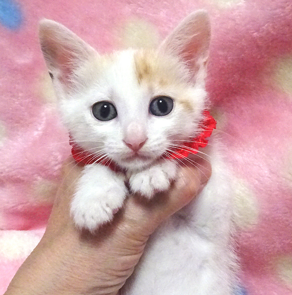 | 特徴(性格など) | 【猫の仮名】ユリちゃん (担当 松嶋) 【毛色・柄】白三毛、長くて真っすぐなシッポ 家猫の母親の元で育ったので栄養状態が良く、きれいな子です♪ 小さくてもトイレができる賢い子です♪ 猫を飼うのが初めての方でも大丈夫です♪ 走っても大丈夫なペット可のお住まいで、猫だけのお留守番が長時間でないご家族を募集しています。 元飼い主の希望により、お一人暮らし、同棲中の方、ご高齢の方には譲渡できません |