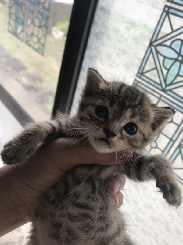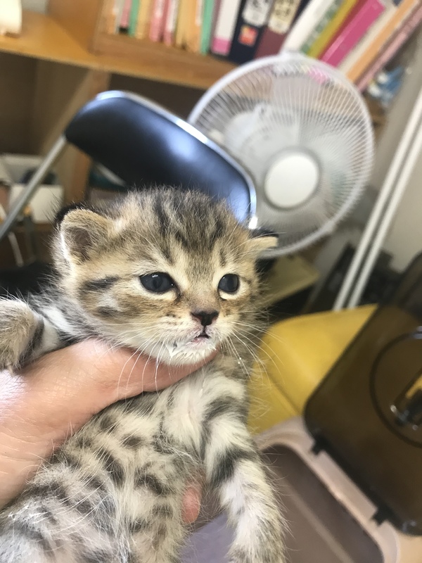 | 特徴(性格など) | キジ柄で少し茶色の縞も入っています。お腹のドット柄が種子島独特です。 まだ乳飲み子で、人間に育てられているので、めちゃくちゃ懐くと思います。 |