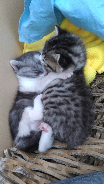| 特徴(性格など) | 二匹の兄弟猫です。一匹は年上気質があるみたいで達観しております。もう一匹はやんちゃです。 | ||