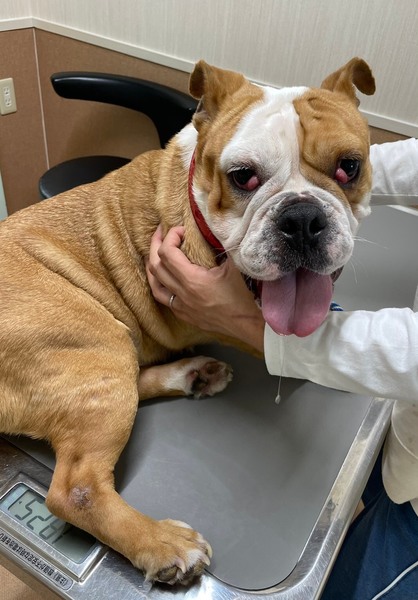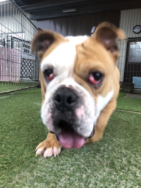 | 特徴(性格など) | 姫ちゃん ブルドッグ 体重18.2キロ とても、人が大好きな姫ちゃん このお顔で、見上げられたら、癒されてしまいます? 両目、チェリーアイの為、避妊手術の時に、処置していただく予定です。 尻尾の下が、不衛生の場所にいた為、化膿していました。 ただ今、投薬と、毎日の消毒をしています。 とても穏やかな可愛いお顔の女の子です。 普段は四日市市桜町のワンワンハートSAKURAにいます。 |