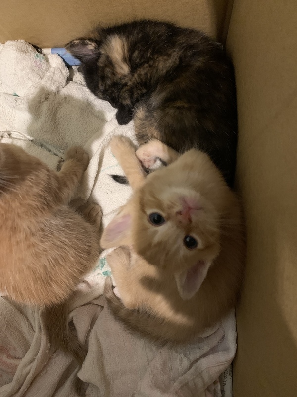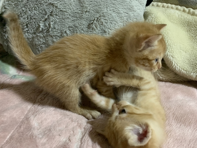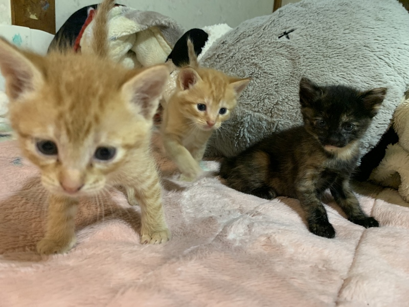 | 特徴(性格など) | 茶トラ2匹、黒茶1匹です。 生後1ヶ月たち、よく動くようになりとても可愛いです。 |